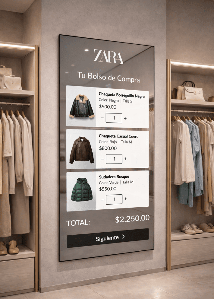 A smart mirror concept developed as part of an academic course, using the Zara clothing brand as case study. Within Form enhances the in-store fitting room experience through augmented reality and personalization. It allows customers to visualize outfits, explore variations, and make faster, more confident purchase decisions.