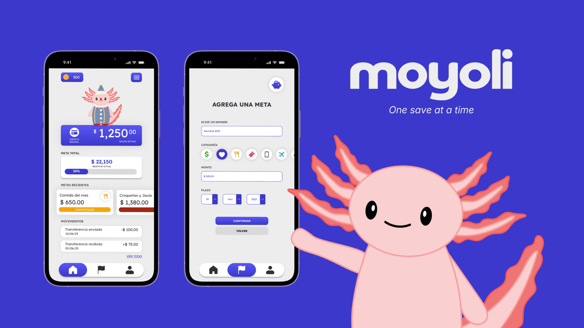 A savings app that encourages healthier financial habits using gamification, emotional design, and a customizable virtual companion.